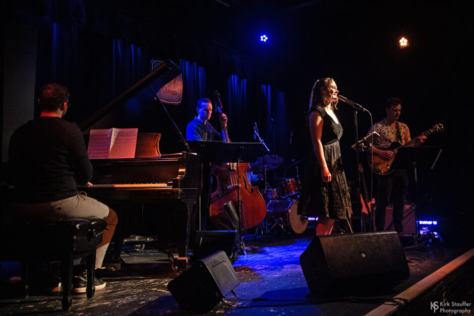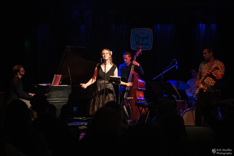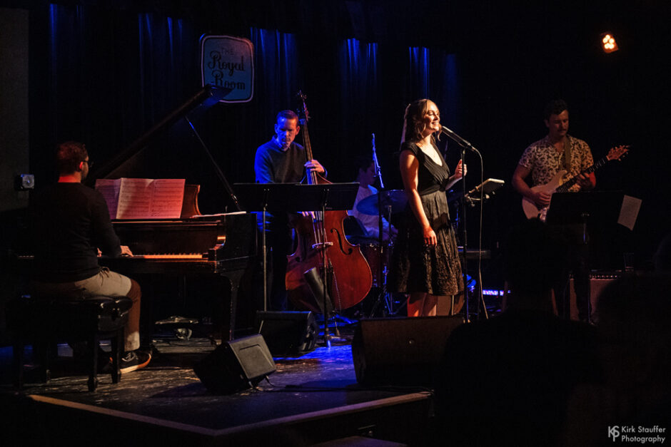 In what was an apparent sold-out show, jazz singer Alex Baird packed the Royal Room for the second time in 18 months. Originally from Seattle, now attending grad school in California, Baird treated friends, family, and fans to holiday favorites and standards, plus songs from her debut album, Lemon Tree, and recently released, Island Blues. Backed by Martin Budde (guitar), Michael Glynn (bass), Dylan Hayes (piano) and Max Holmberg (drums), the solos and arrangements were the perfect complement to Baird’s naturally beautiful voice.