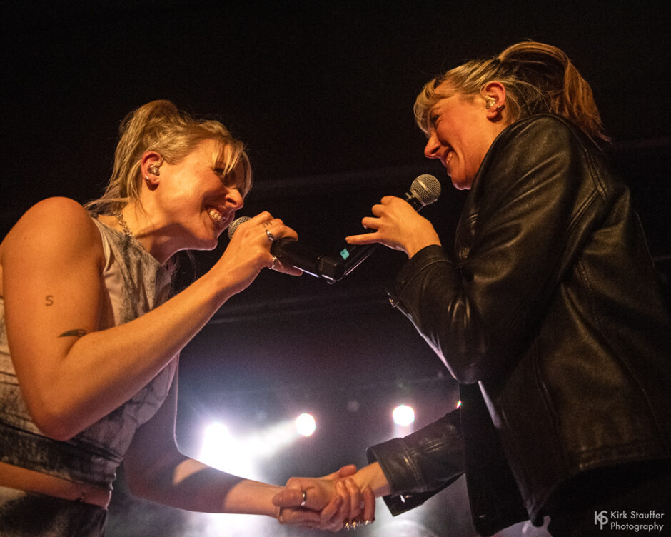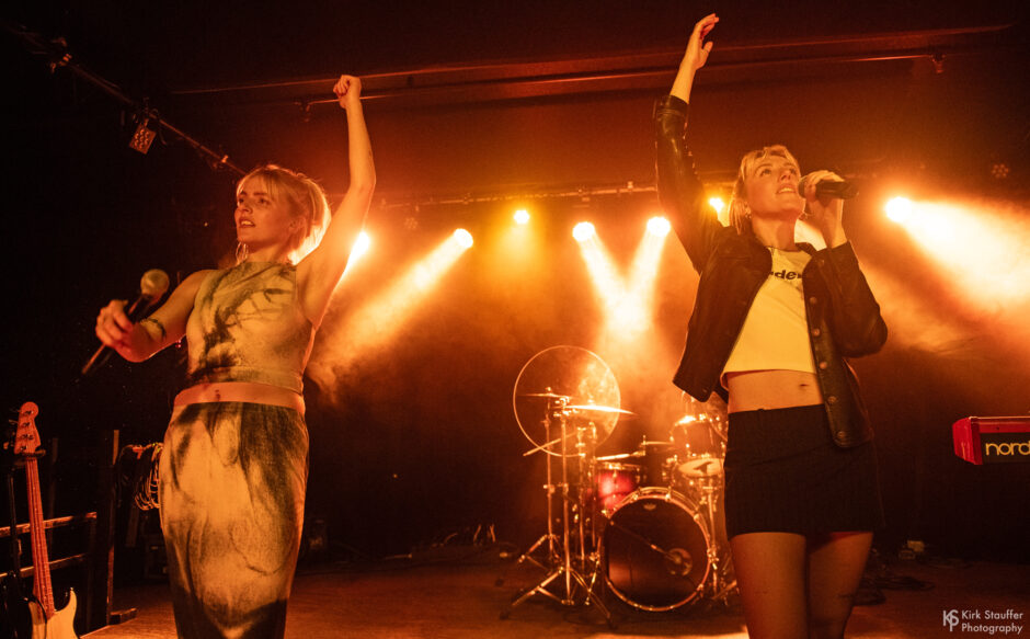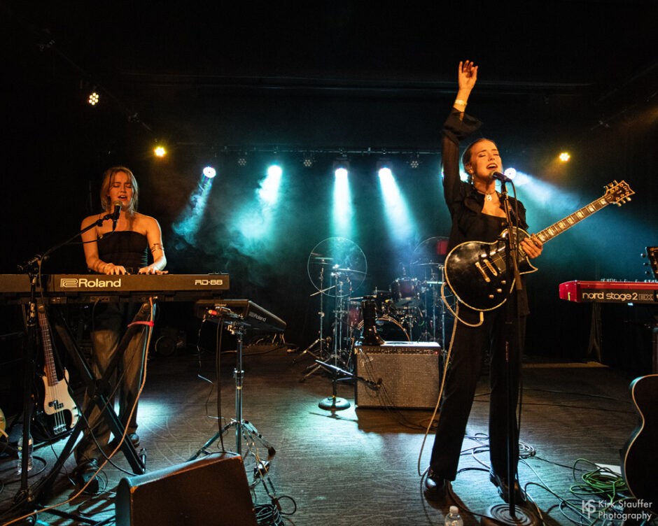British pop/rock duo IDER headlined at Madame Lou’s last week, the 2nd show of their 10-city Late To The World Tour. Singer-songwriters Lily Somerville and Meg Markwick gave a powerful performance to an enthusiastic crowd that packed the venue. The two harmonized beautifully while they alternated between guitar and keys, and were backed by drummer Max. LA-based, identical twin sisters KTJ & CARLY opened.