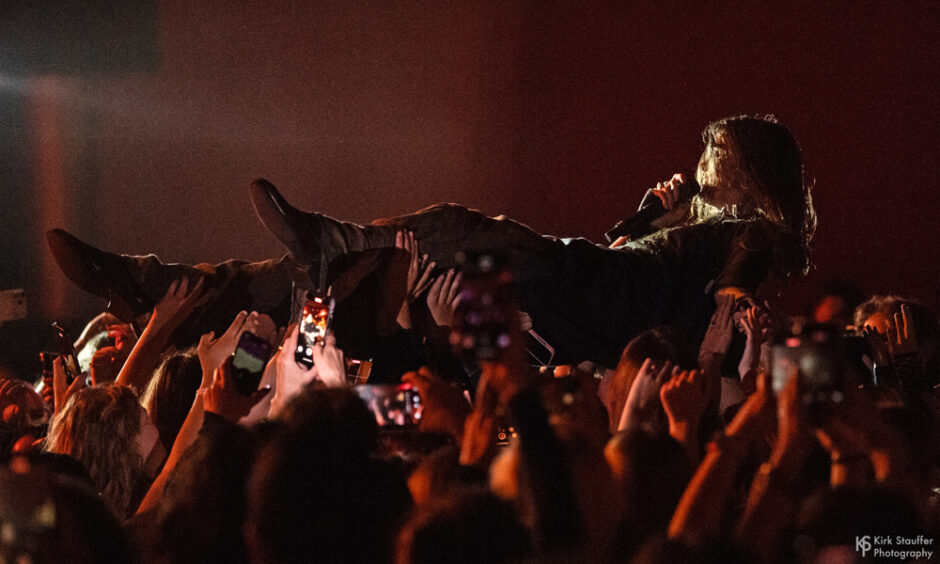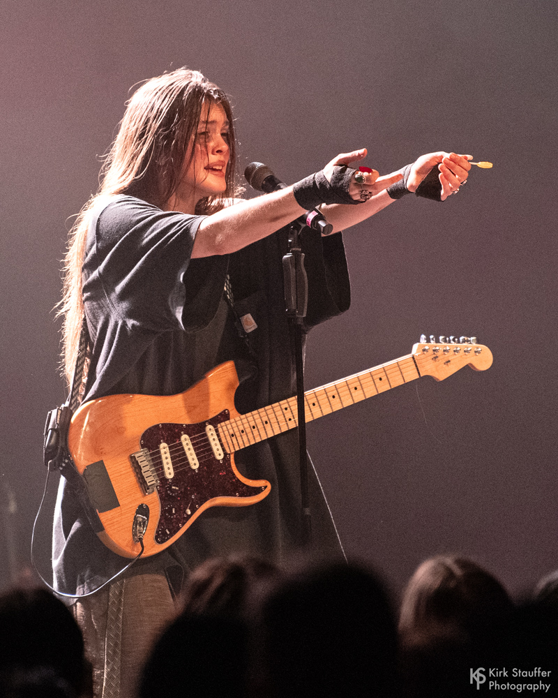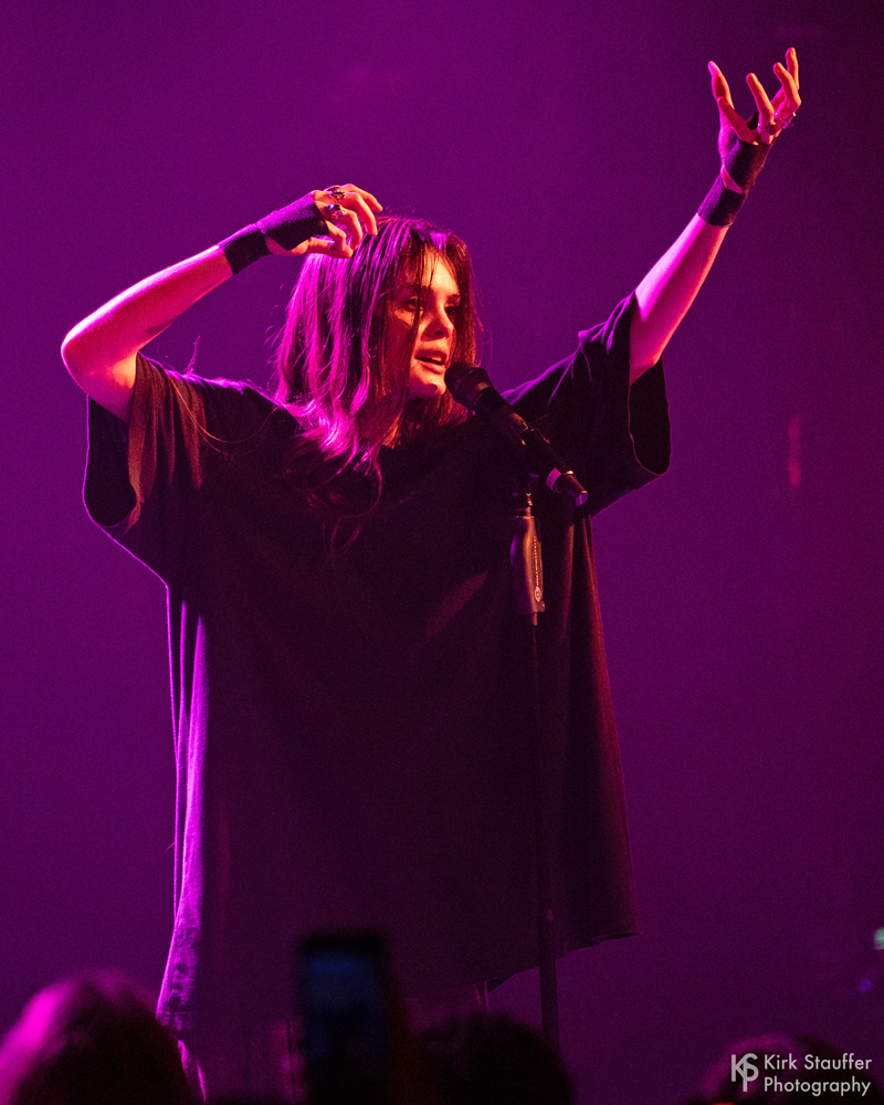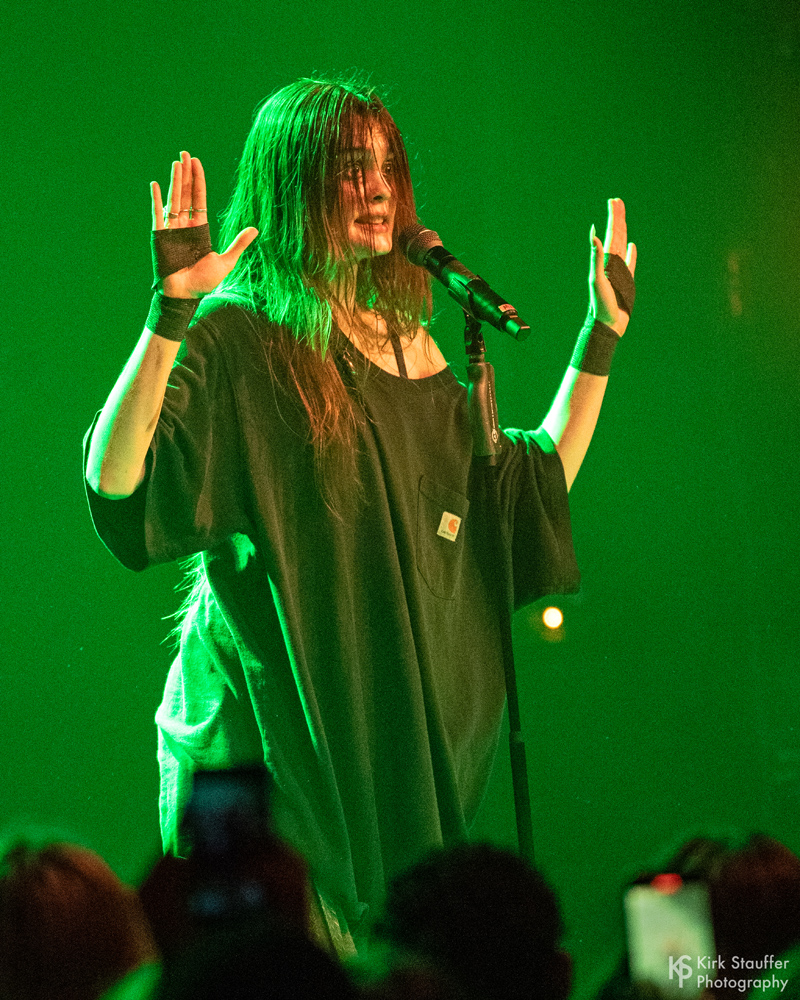 Sofia Isella headlined at the Showbox in Seattle near the end of her current You’ll Understand More, Dick tour. The intimate performance was just Sofia and the engaged audience – no backing band – while she supplemented her prerecorded songs with guitar, violin, bass, and piano. The connection with the crowd was further underscored as she walked among them while singing “All of Human Knowledge Made Us Dumb“ and later crowd surfed during “Sex Concept”. Los Angeles-based singer-songwriter Ayleen Valentine opened.
