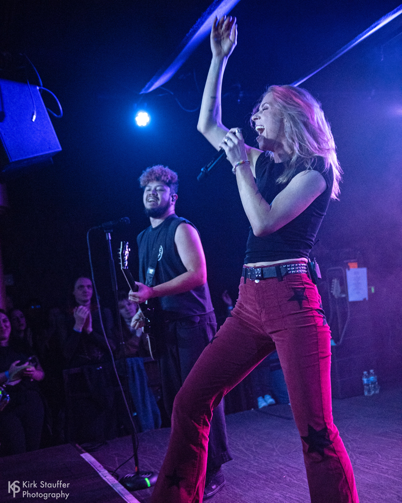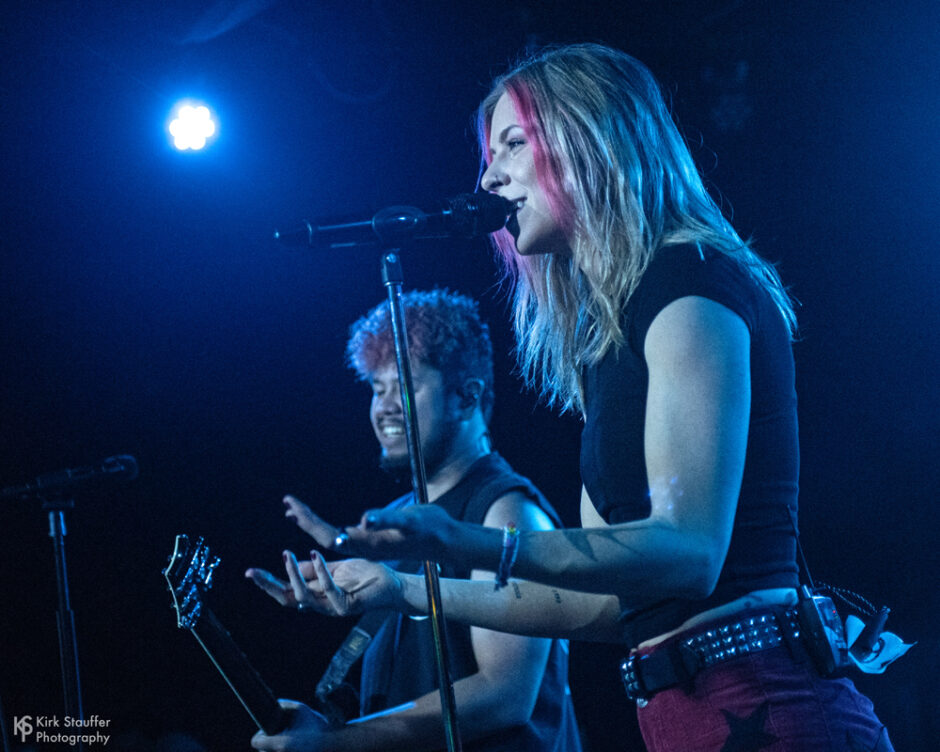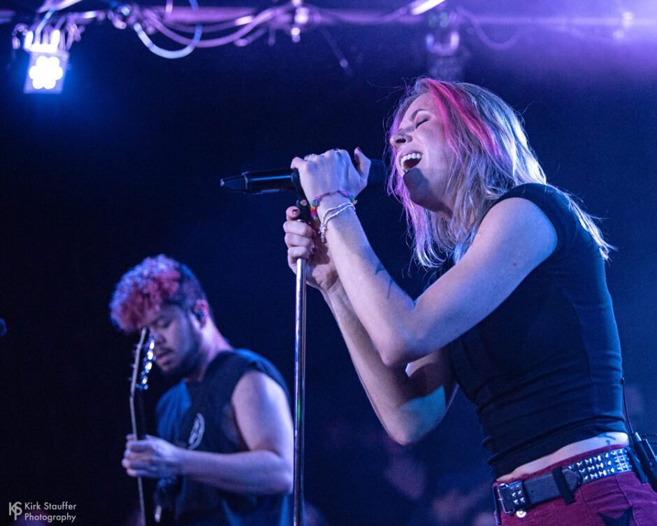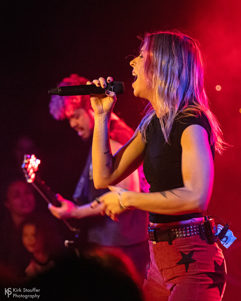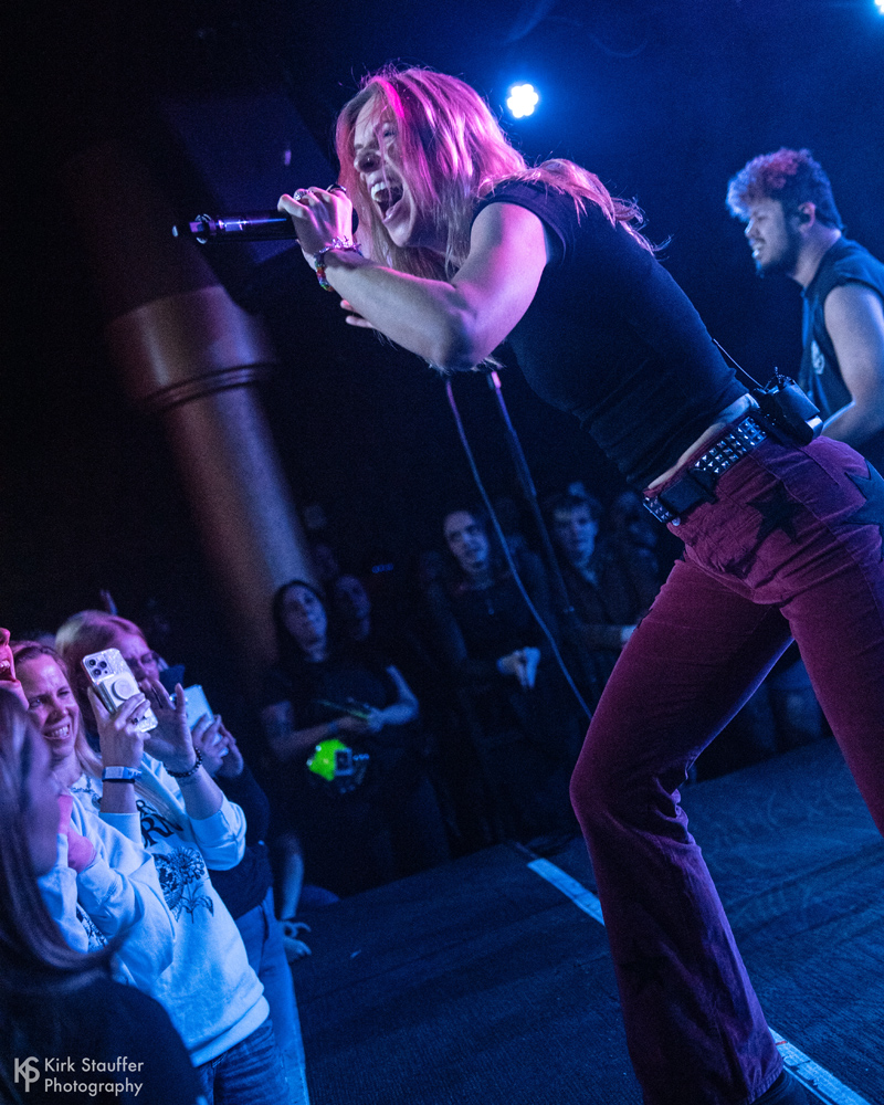 Taylor Acorn hit the stage with the high energy that characterized her set.  The sold-out show at Madame Lou’s was the perfect venue for the crowd to hear numerous songs from her recently released Poster Child as well as older favorites.  Backed by high octane performances by guitarist Ricky Jab and drummer Connor Allen, Acorn proved why she’s become one of pop-punk’s most compelling live voices.
