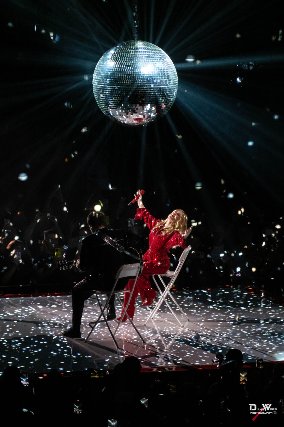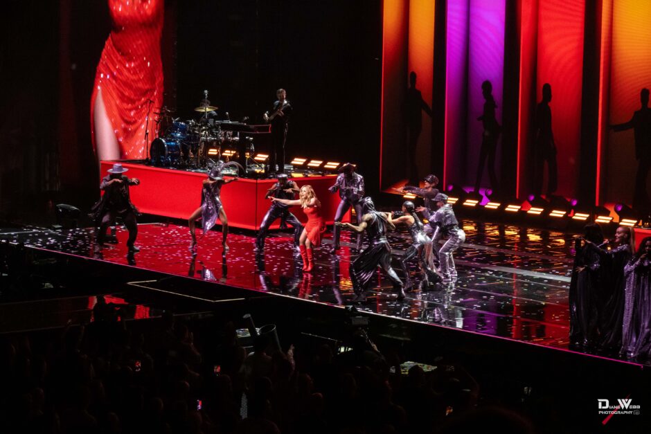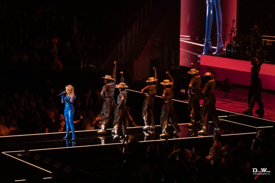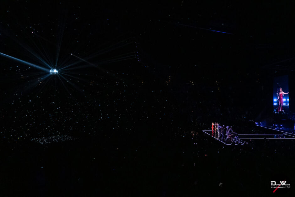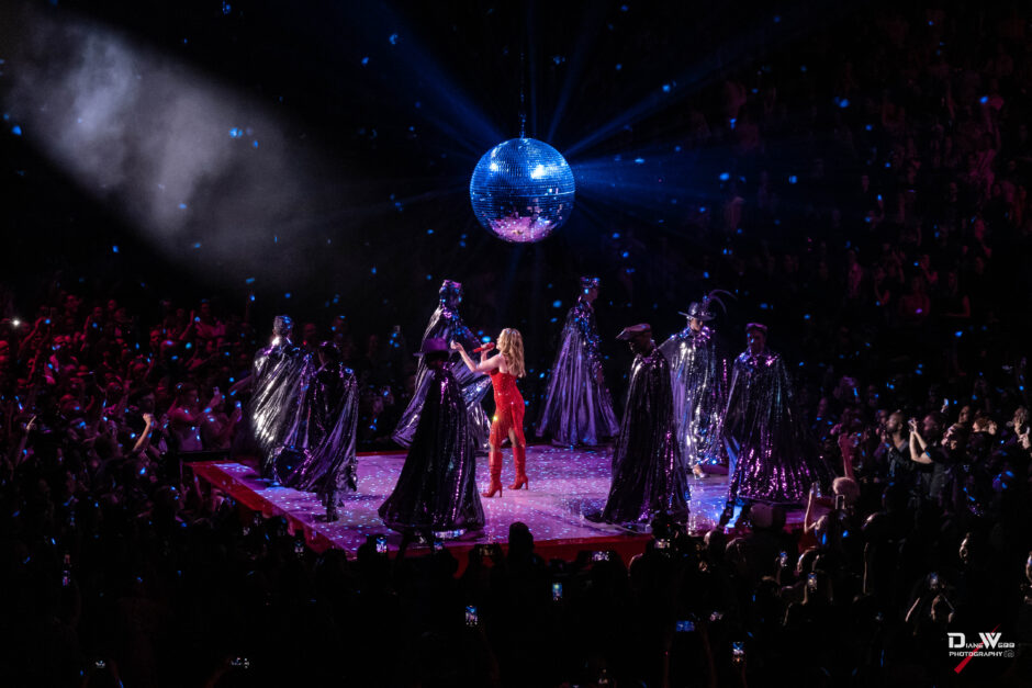 This portion of the show marked the beginning of the “Disco” set. As a massive disco ball descended from the ceiling, casting shimmering lights throughout the arena, Minogue, surrounded by her dancers, changed costumes and delivered a glittering performance of “Supernova” before returning to the main stage.