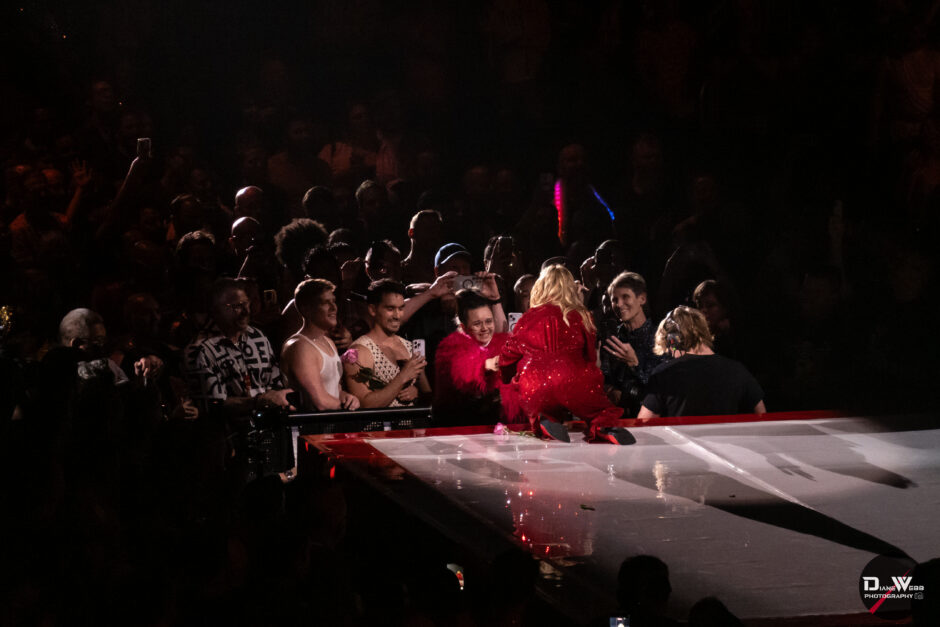 Midway through the B-stage set, Minogue began her tradition of handing out roses and selecting one fan to be her “Wild Rose” for the night. For Seattle, that was Vanessa, a young woman in a furry hot pink jacket who had come alone. Minogue held her hand and chatted with her, giving the moment warmth and authenticity that fans will long remember.
